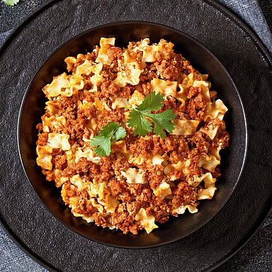 Nudeln mit Hackfleisch- und Joghurtsoße