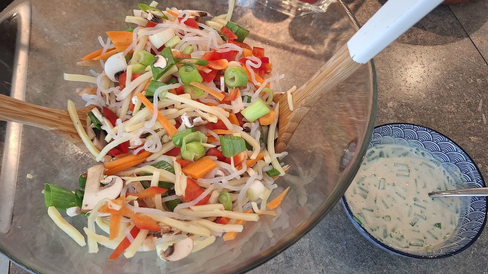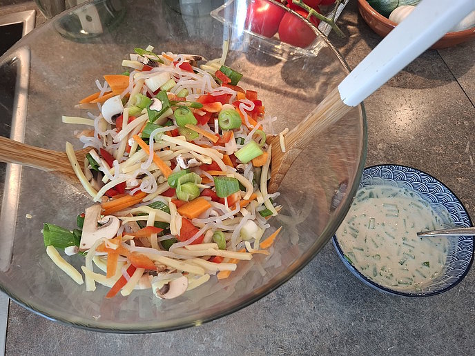 Konjaknudelsalat mit Pilz-Joghurtdressing