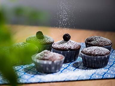 Teig gleichmäßig in die Vertiefung des Muffins–Blechs füllen und auf mittlerer Einschubleiste ca. 20–25 Minuten backen. Die Muffins noch ca. 5 Minuten in der Form ruhen und auskühlen lassen.