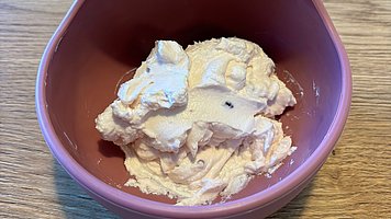 Zuhause angekommen, braucht Elisa meist einen Moment für sich mit ihrer Musikbox, im Grunde wie wir nach der Arbeit mit unserem Partner und/oder vor dem Fernseher, oder bei einem Glas was auch immer. Nach dieser Zeit für sich, spielen oder toben wir zusammen oder wir erledigen gemeinsam die typischen Aufgaben, die so im Alltag anfallen. Gegen 17:30 Uhr bereite ich das Abendessen vor, heute gibt es eine Mischung aus Mascarpone, griechischem Joghurt, MCT-Öl und ein paar Flavour Drops, oder etwas Flavour Pulver.
