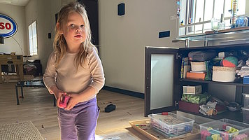 Nach dem Abendessen gibt es für Elisa wieder einen Moment zum Runterkommen, am liebsten sitzt sie dann in ihrem Tipi mit der Musikbox und sortiert ein paar Spielsachen oder Trommelsteine. Nach dieser kurzen „Pause“ geht es zum Zähneputzen und Vorlesen, kein Abend ohne ihr Pustebuch - und wenn die letzten Lichter im Buch erloschen sind, geht es ins Bett und zu den Klängen der Musikbox ins Traumland.