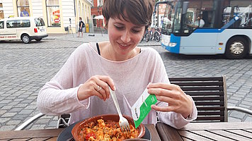 Mahlzeiten im Glas sind durchaus praktisch, beispielsweise im Biergarten oder bei einem Stadtbesuch. Vor zwei Wochen war das Wetter ideal für einen Biergartenbesuch. Ein leckerer Salat im Glas und ein Johannisbeerenshake mit KetoBiota durften nicht fehlen. Leider schlug das Wetter blitzartig um und wir trafen uns kurzerhand in einer Pizzeria. Eigentlich ist das nie ein Problem, doch in diesem Restaurant konnte ich meine selbstgemachte Mahlzeit nicht essen und so schaute ich mit einem Glas Wasser am Tisch allen anderen beim Essen zu. Direkt danach habe ich dann meine Keto-Mahlzeit draußen gegessen. Tatsächlich ist es nicht immer einfach, wenn man spontan neu planen muss und unvorbereitet ins Restaurant geht. Ich habe viel dazu gelernt und habe ab jetzt stets einen Beutel KetoBiota oder MCTfiber als To-Go-Lösung dabei.