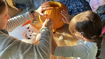 "Antonia liebt die Herbstzeit und als Höhepunkt Halloween. Schon ab Anfang Oktober beginnen wir gemeinsam Kürbisse auszuschnitzen. Dann stellen wir diese mit einer Lampe vors Haus." In ihrem Beitrag berichtet Mama Claudia wie sie Halloween keotgen umsetzt.