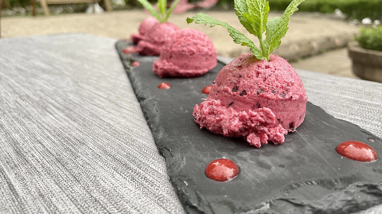 - Mit einem Eisportionierer Kugeln abstechen und servieren.