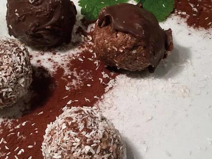 - Kokosraspeln auf einen Teller geben und 8 Bälle darin wenden.