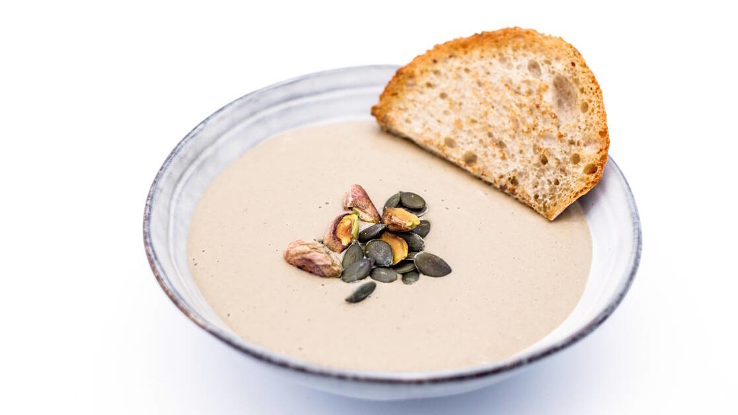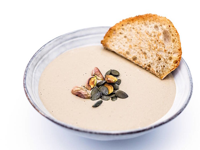 - Mit gerösteten Kürbiskernen und einer Scheibe geröstetem Roggenbrot servieren.