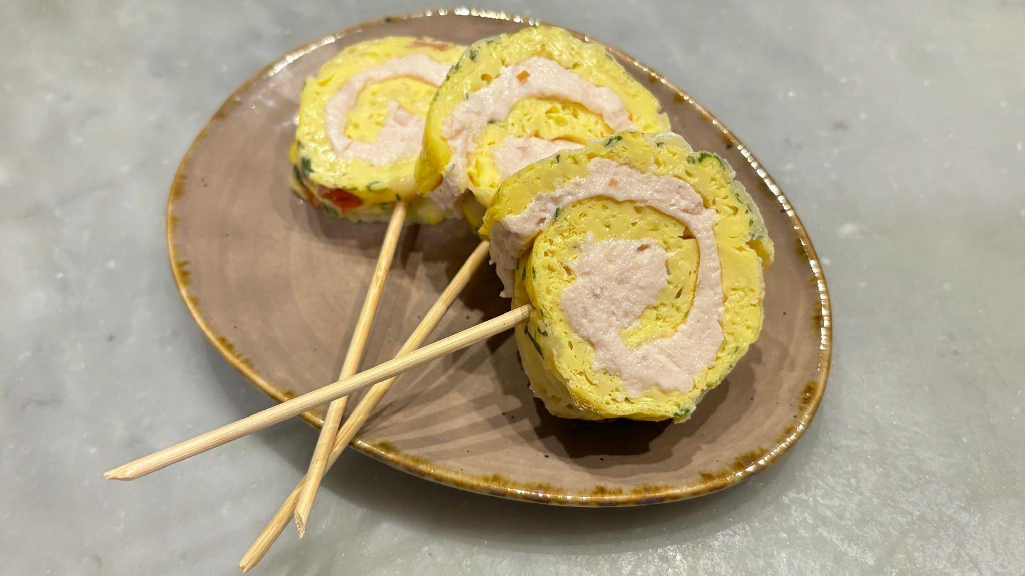 - Die Roulade in Backpapier einwickeln und im Kühlschrank fest werden lassen. Vor dem Servieren in Scheiben schneiden.