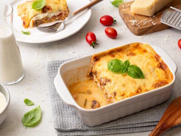 - Für die Bechamelsauce Margarine in einem Topf schmelzen lassen. Keto Baking Mix hinzugeben und unter ständigem Rühren gut vermischen. Dann Keto Epi 4:1 Classic dazu rühren und die Sauce köcheln lassen, bis sie dickflüssiger wird. Mit Salz, Pfeffer und Muskatnuss abschmecken.