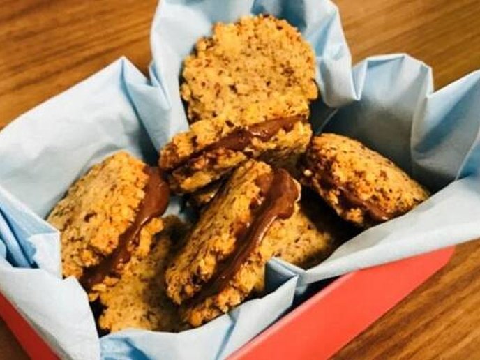 - Jeweils zwei Kekse aufeinanderlegen und in der Mitte mit je 4 Gramm KetVit füllen.