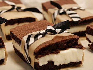 - Die Füllung auf eine Hälfte geben und gleichmäßig verstreichen. Mit der zweiten Biskuithälfte abdecken und für mindestens 2 Stunden in den Kühlschrank stellen. Gekühlt in 10 kleine Schnitten schneiden und genießen.