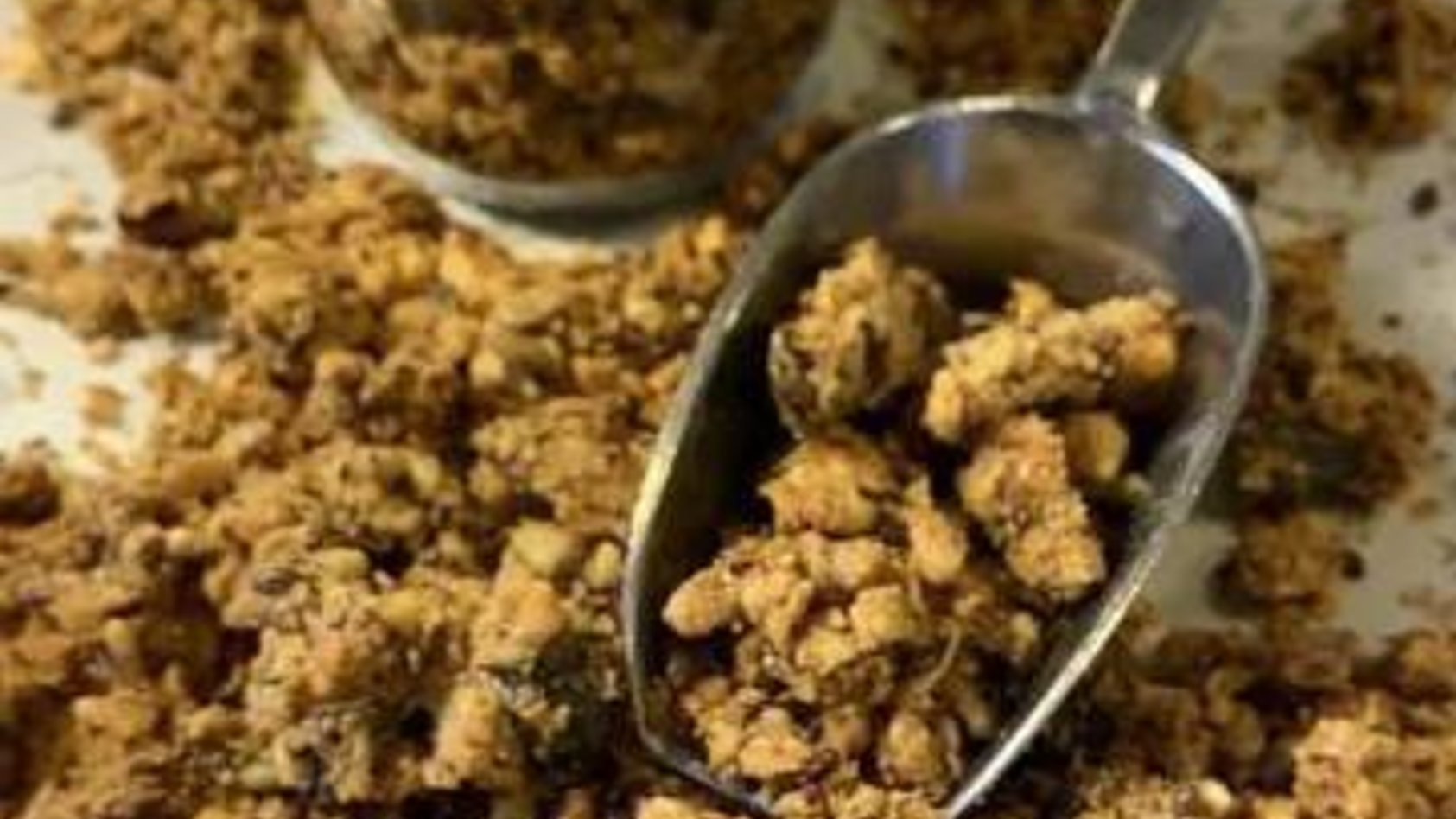 - Kokosraspeln, Chiasamen, Leinsamen, Sonnenblumenkerne und Keto Biota dazugeben und alles vermischen.