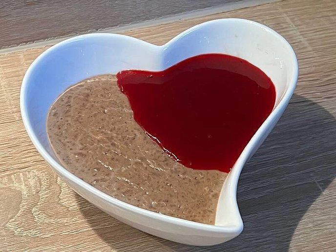 - Kirschen entsteinen und mixen bis eine homogene Masse entsteht.
