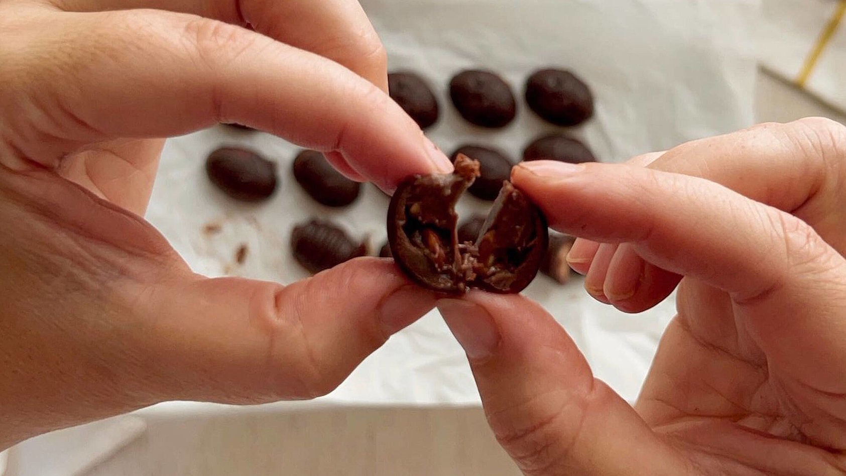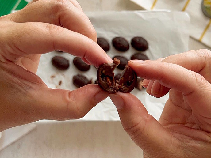 - Förmchen solange ins Gefrierfach stellen, bis die Schokolade hart ist.