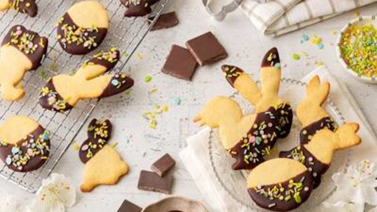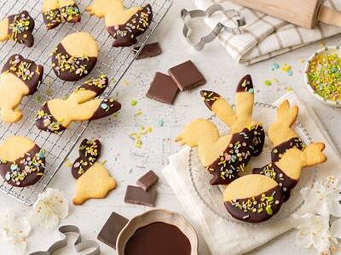 Wenn am Ende noch eine Glasur übrigbleibt, Plätzchen evtl. ein zweites Mal mit Schokolade überziehen. Mit Streuseln verzieren.