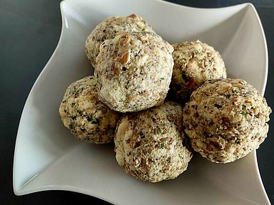 - Mit nassen Händen Knödel formen und in kochendes Salzwasser einlegen. Die Hitze reduzieren und bei halb aufliegendem Deckel ca. 20 Min. garen.