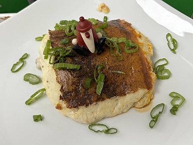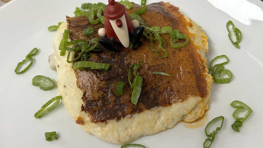- Gouda reiben und einrühren. Mit Salz, Pfeffer und Muskatnuss abschmecken.