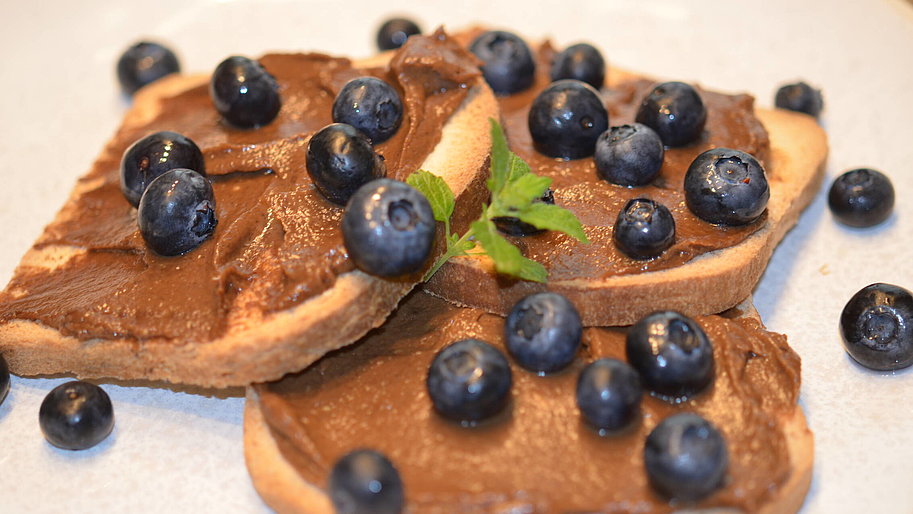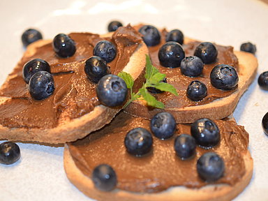 Toast mit Schokocreme und Blaubeeren