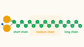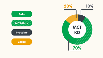 Medium-chain triglycerides (MCTs) are fats that are absorbed more quickly by the body due to their shorter carbon chain. They are also converted into ketone bodies more efficiently than regular fats (11). This means that by replacing part of the fat intake with MCTs, it's possible to consume slightly less total fat while still maintaining reliable ketosis. This allows for more flexibility in the diet, including the option to include more carbohydrates and make meals more varied. Interestingly, research in recent years has shown that MCTs may also help reduce seizures independently of ketosis (12). In other words, MCTs could support seizure control even without following a strict ketogenic diet.