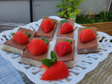 Mix KetoBaking Mix with cocoa powder and MCTfiber. Prepare egg substitute with 100 ml water according to package instructions and add to flour mixture. Mix in erythritol and salt.
