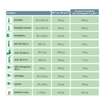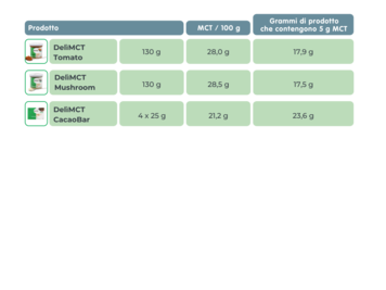 - Alimenti a fini medici speciali sono progettati con formulazioni specifiche, dove gli MCT sono composti principalmente da C8 e C10, con quantità minime o assenti di C12.