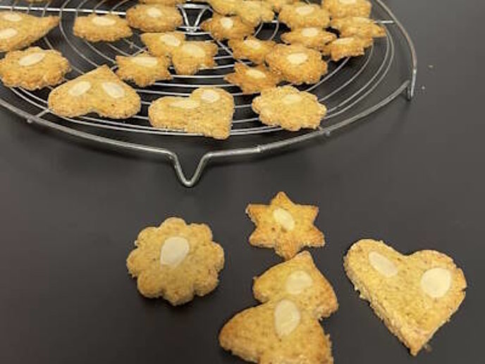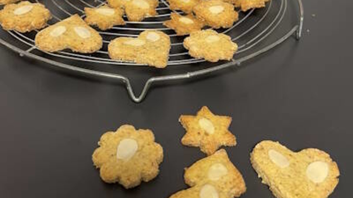Consiglio: Come “glassatura”, mescolare tuorlo con un po’ di eritritolo e polvere di vaniglia e spennellare i biscotti prima di infornarli. Saranno particolarmente belli se si aggiungono anche alcune lamelle di mandorle sopra.