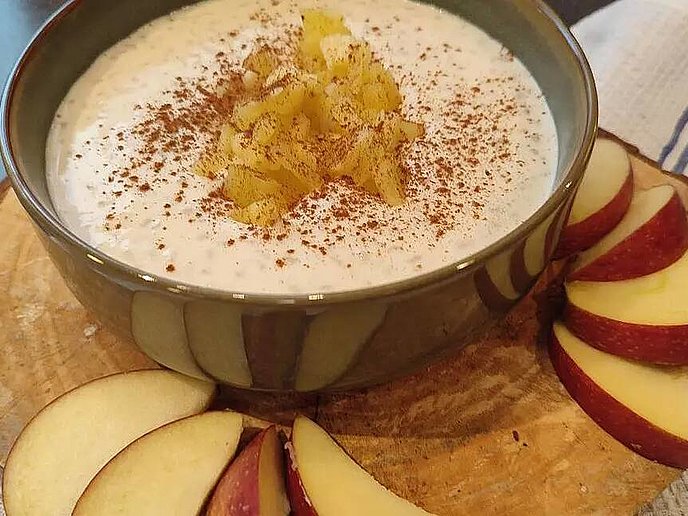 - Decorare con i cubetti di mela e cospargere con un po' di cannella.