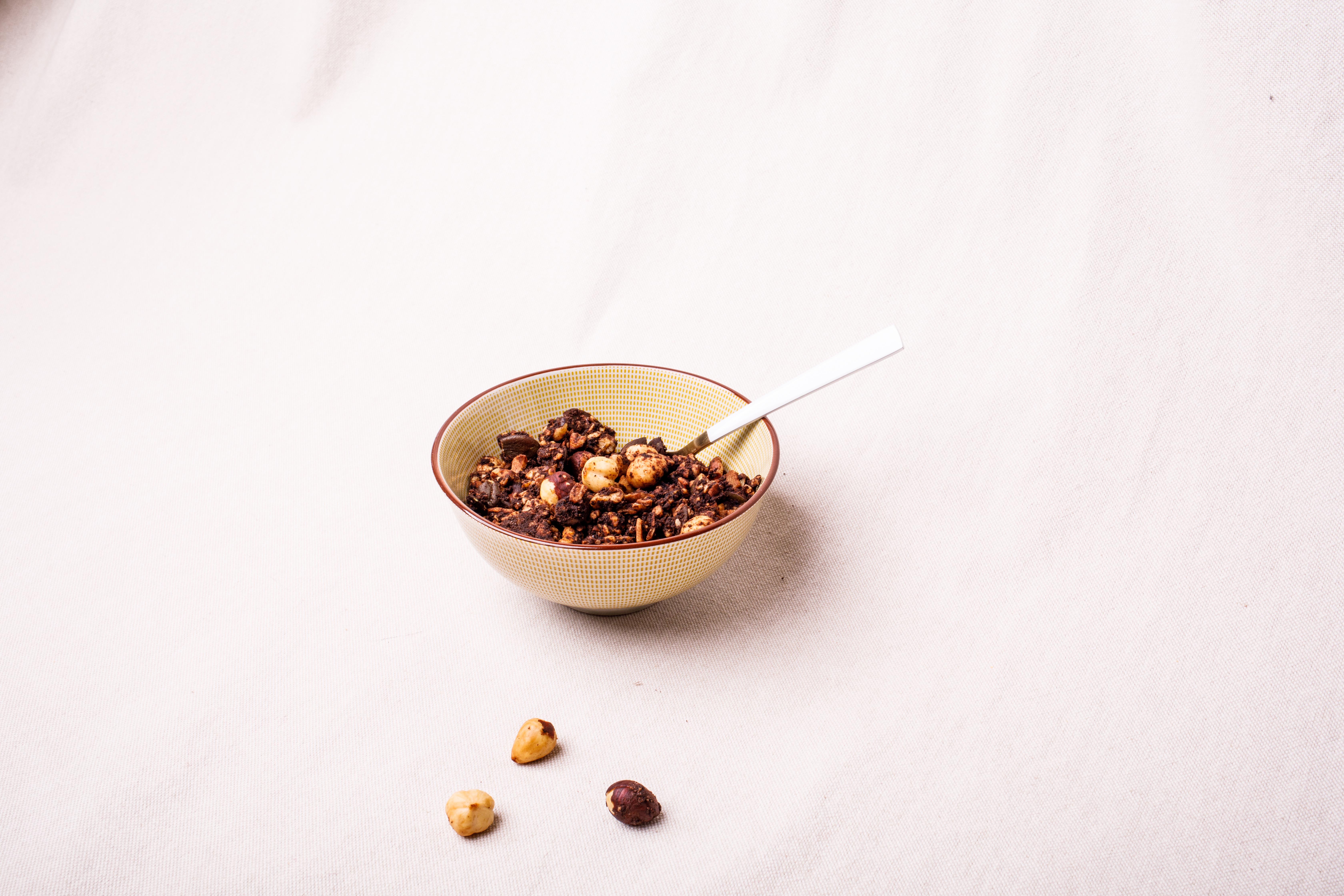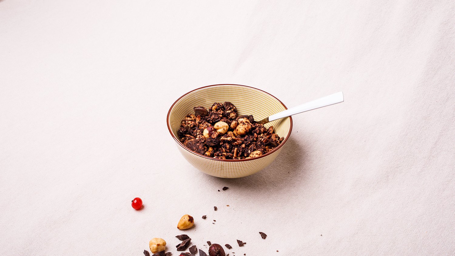 In un’altra ciotola unisci l’olio MCT 100%, l’eritritolo (se desideri una versione dolce della granola) e l’albume, sbatti bene con una forchetta.