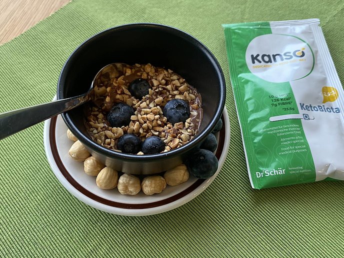 - Amalgamare KetoBiota Kanso (polvere ricostituita precedentemente con acqua q.b) con il cacao amaro in polvere.