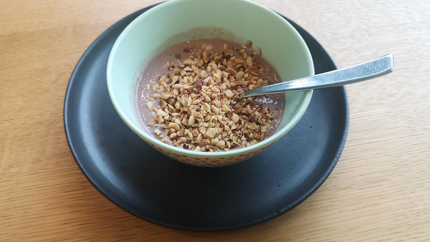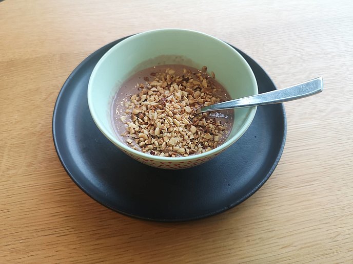 Frullato cioco-lamponi con granella di nocciole