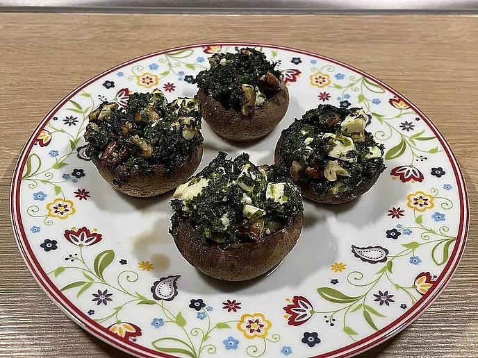 Funghi Ripieni con Spinaci e Feta