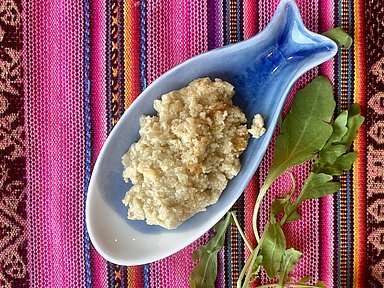Frullare ceci con l’Olio MCT 100% Kanso e salsa tahina come Damiano, fino ad ottenere una crema da accompagnare alle pietanze.