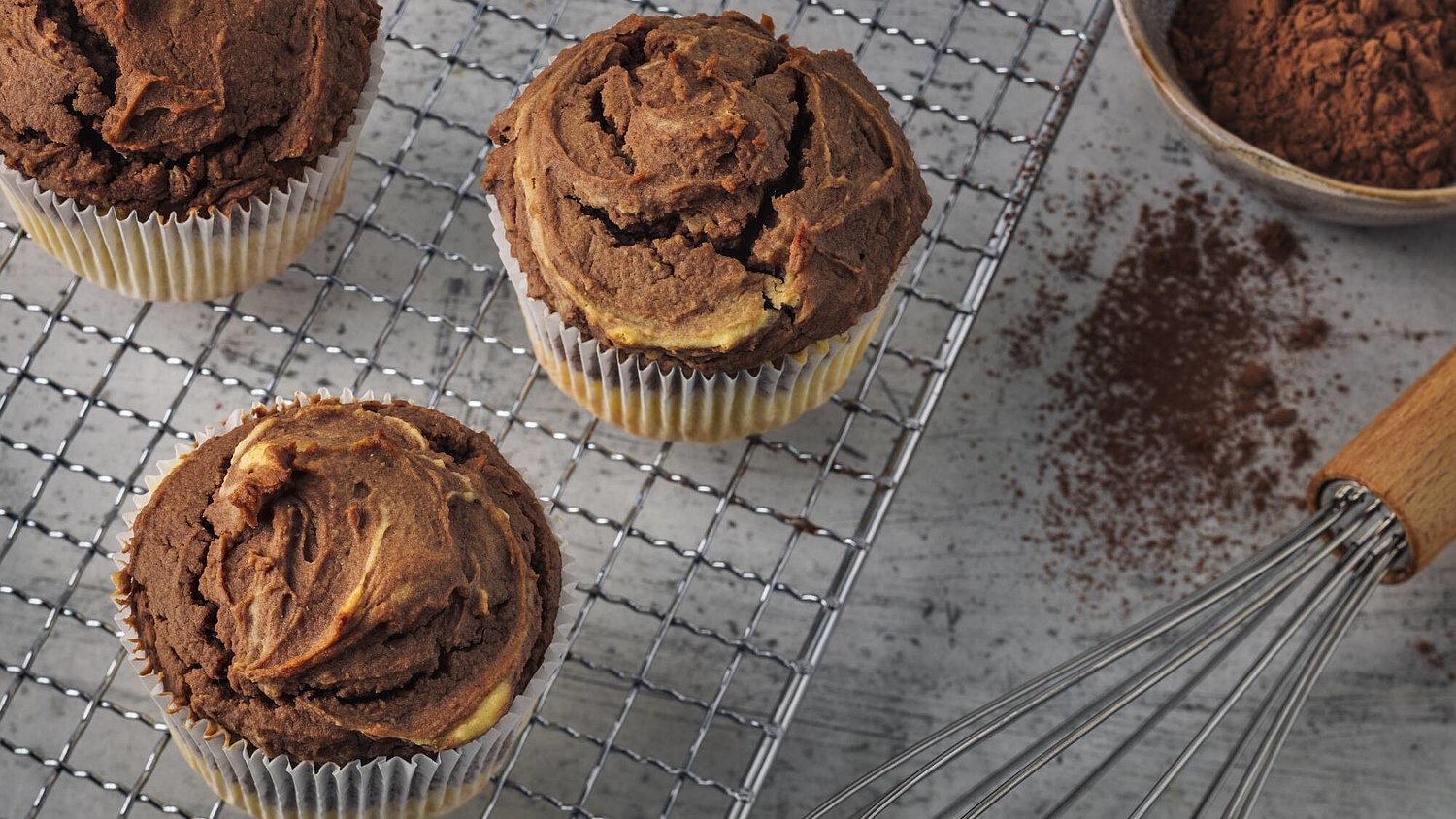 - Mescolare il cacao con l’altra metà, frullare nuovamente con il frullatore a immersione e distribuire il composto scuro sopra quello chiaro.