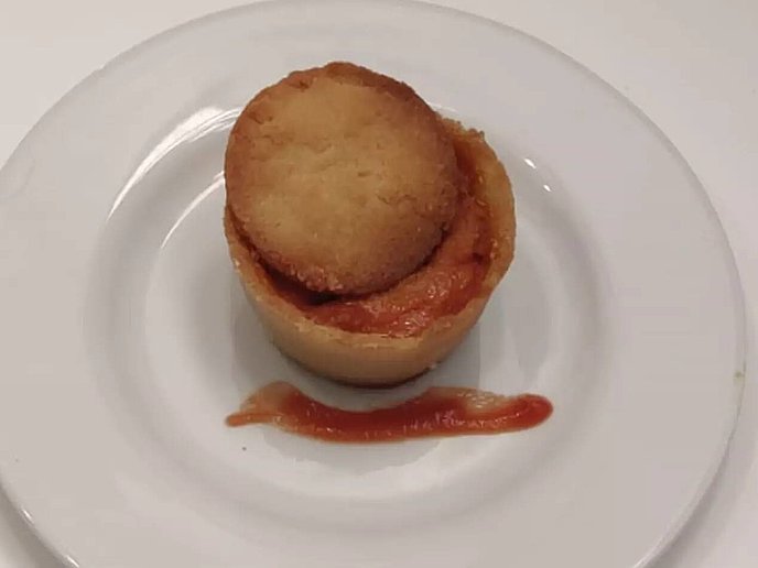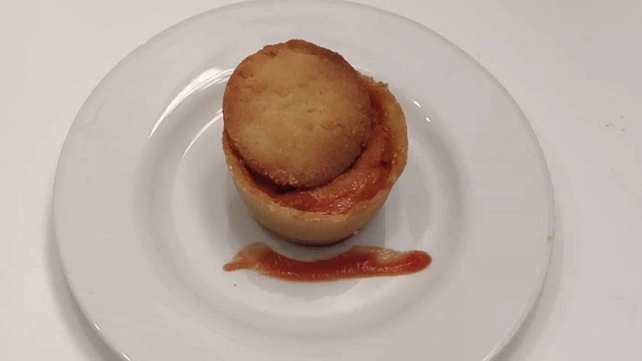 - Mescolare le farine e MCTfiber con 1 g di xantano e MCT margarina, aggiungere 7 g di grana e sfregare con le dita fino a ottenere un impasto sabbioso. Aggiungere l'albume e amalgamare, quindi lasciare riposare in frigorifero per 1 ora. Ungere leggermente uno stampino di alluminio con olio e spolverare con 3 g di farina di mandorle.