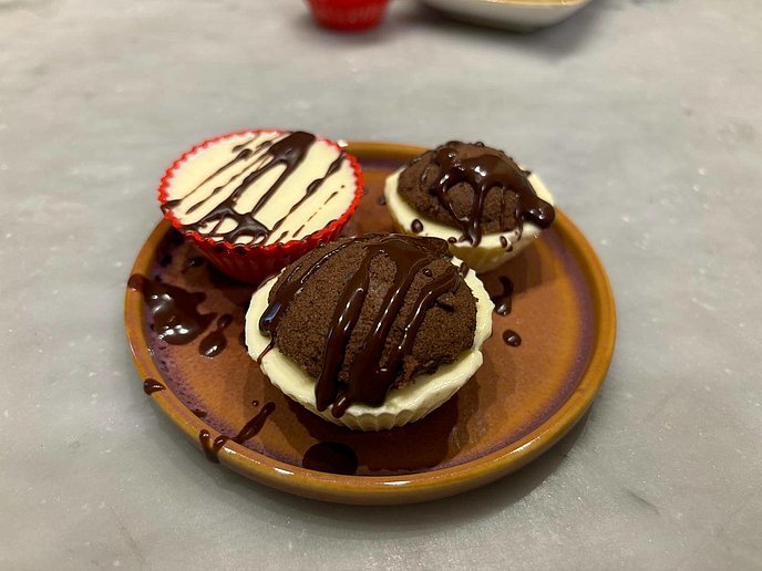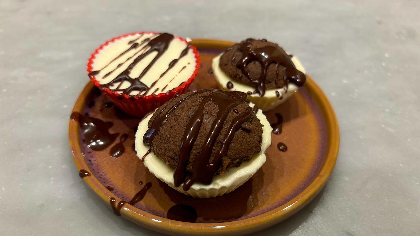 - Riempire ciascuno (circa 14 pirottini/stampini, circa 7 cm di diametro) con circa 15 grammi del composto tenuto precedentemente in frigo.