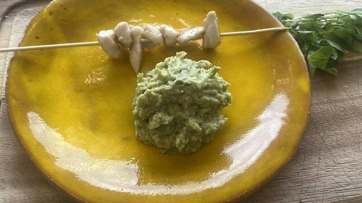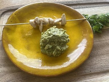 Spiedini di pollo con salsa guacamole ai funghi