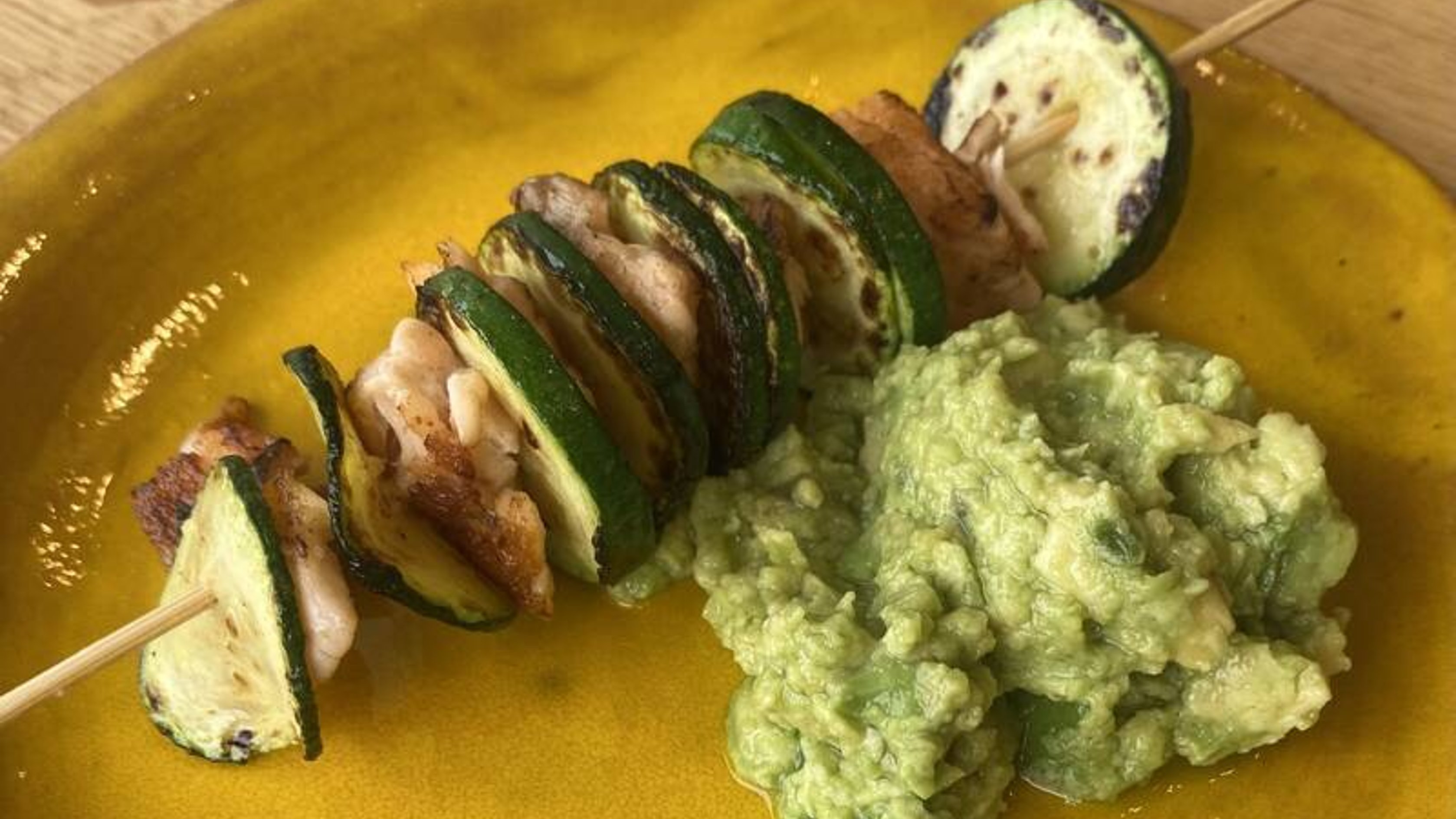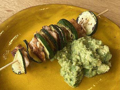 Spiedini di salmone e zucchine con salsa guacamole