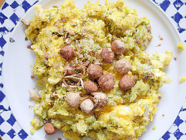 Uovo strapazzato con zucchine e granella di nocciole