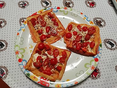 - Mettere nella piastra per waffle. Farcire con feta grattugiata, pomodorini, un filo d'olio EVO e origano.