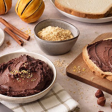 Crema al gusto di cacao e nocciole ricca di grassi e povera di carboidrati, pronta per essere spalmata e gustata.